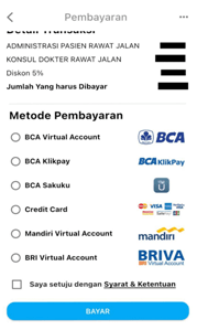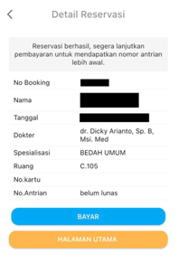 Khusus penjamin umum, akan muncul pilihan BAYAR (untuk mendapatkan nomor antrian). Kemudian, ikuti langkah selanjutnya untuk mendapatkan nomor virtual account pembayaran.